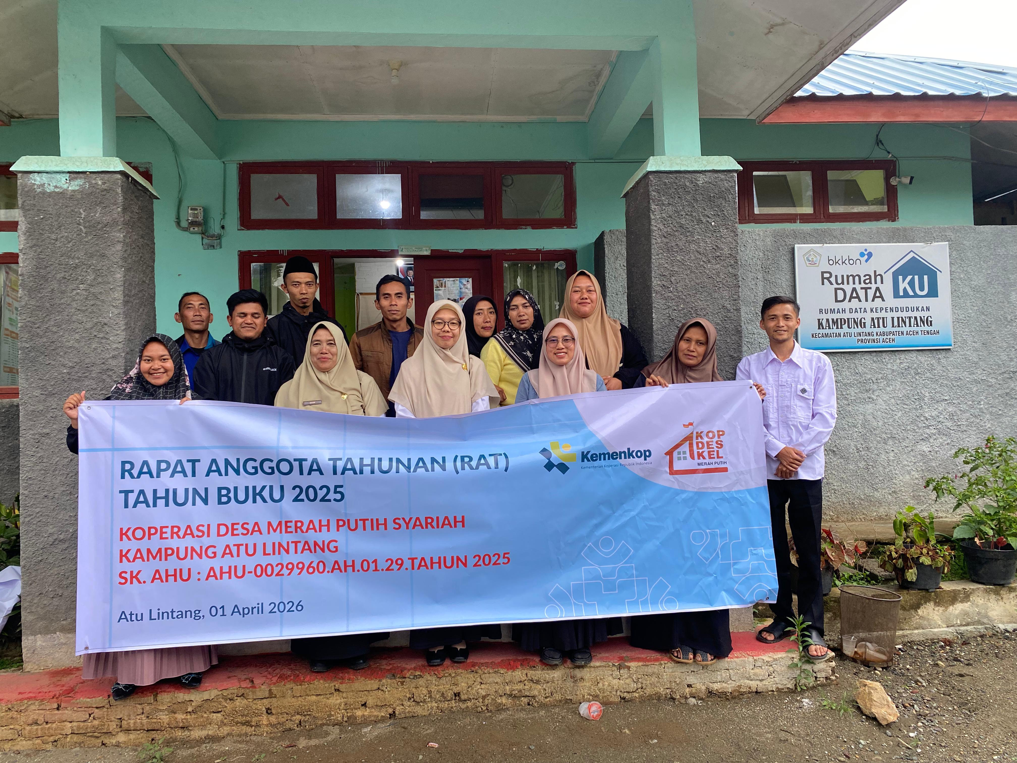 atulintang.desa.id – Rapat Anggota Tahunan (RAT) Koperasi Desa Merah Putih Syariah Kampung Atu Lintang digelar pada Rabu, 1 April 2026 di Kantor Reje Atu Lintang. Kegiatan ini merupakan agenda rutin tahunan koperasi sebagai bentuk pertanggungjawaban pengurus kepada para anggota sekaligus evaluasi kinerja koperasi selama satu tahun terakhir.